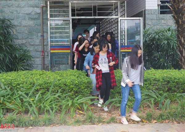 本网讯(记者 陈敏仪 曹海燕)4月19日中午,学校组织全体学生在宿舍楼学1-8栋及教2、教4栋举行应急疏散演练。党委书记、副校长黎冬,副校长杨永强现场指挥了演练。