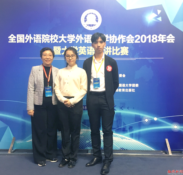 本网讯 4月20至22日,大学英语教学部主任张习群教授带领两名学生赴天津参加第九届全国外语院校大学外语协作会年会暨大学英语演讲比赛。我校学生在比赛中取得良好名次的同时,我校还成功取得了第十届全国外语院校大学外语教学协作会年会举办权。