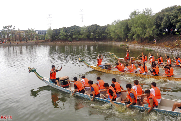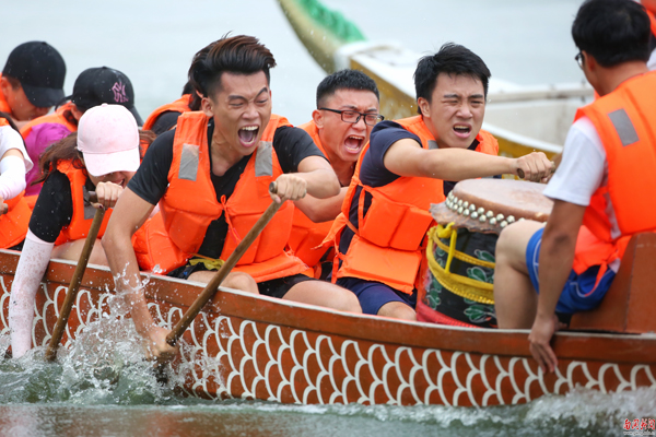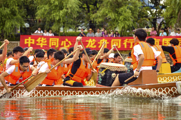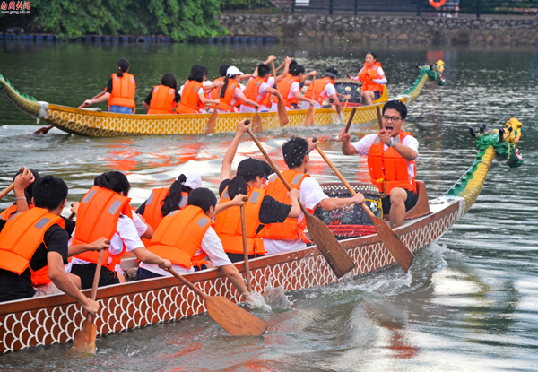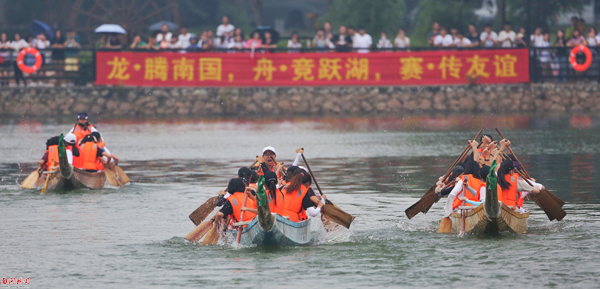 【编者按】五月五,过端午。赛龙舟,敲锣鼓。6月7日,龙舟赛决赛在跃龙湖热闹举行。尽管天公不作美,龙舟比赛的时候大雨倾盆,但是,丝毫不影响参赛者和观赛者的热情,比赛风雨无阻。锣鼓声起,伴随着观众的加油呐喊声,一艘艘疾驰的龙舟宛若蛟龙,迎着风雨,劈波斩浪,好不热闹。