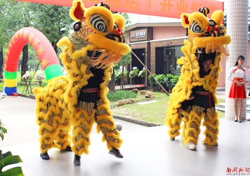 鸣炮声响,金狮舞动,学校领导为南北粉面馆(南国店)剪彩,粉面馆正式开业。(文/翁琳 吴衍橙 朱翠婷 图/廖思洁)