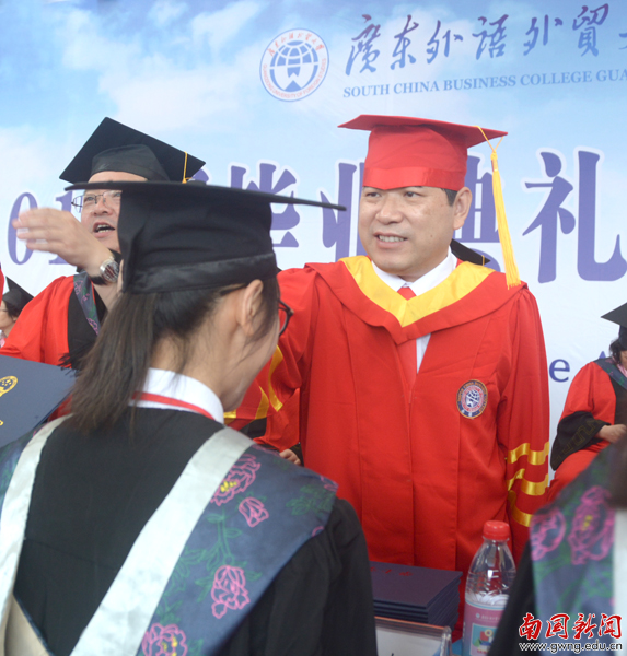 校长焦方太,党委书记、副校长黎冬,常务副校长赖志立,副校长何艾兵、杨永强、熊匡汉、王心洁、杨励出席典礼。各学院、教学部负责人,教授代表和全体毕业生家长观礼。黎冬主持典礼。