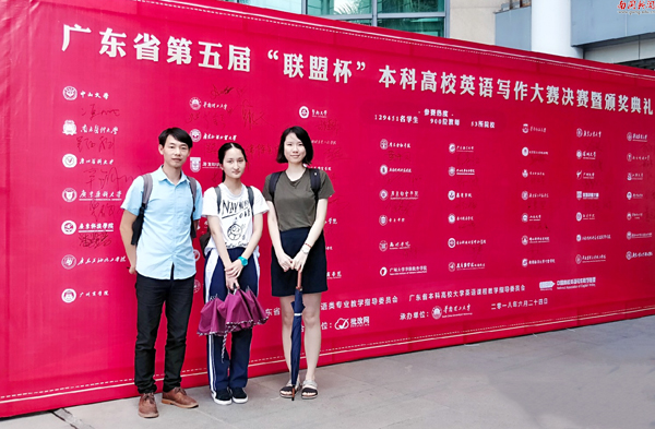 参加本届广东省联盟杯写作大赛决赛一共有155名选手,来自包括了中山大学、华南理工大学、广东外语外贸大学等在内的53所高等院校。决赛选手从全省参加“联盟杯”本科高校英语写作大赛暨2018年“百万同题英文写作”活动的129451名选手中脱颖而出。选拔赛要求参赛选手就一个主题进行网络写作,所有作品在网上直接评阅,我校共有392名学生参加。通过初选,范琳苑与杨思敏同学获得了决赛的资格。决赛要求选手在2小时内完成一篇700字以上的话题作文,从思想内容、写作技巧、语言质量等三方面对学生的英语写作能力进行考查。除了评分系统机器评阅外,本次比赛人工评阅还邀请了由广东省本科高校外语类专业教学指导委员会英语专业分委员会主任委员、广外英文学院院长温宾利教授和广东省本科高校大学英语教学指导委员会主任委员秘书长、广外英语教育学院副院长陈金诗教授领衔的40名专家评审团,对决赛作品进行评阅,以保证比赛结果的公正性和权威性。