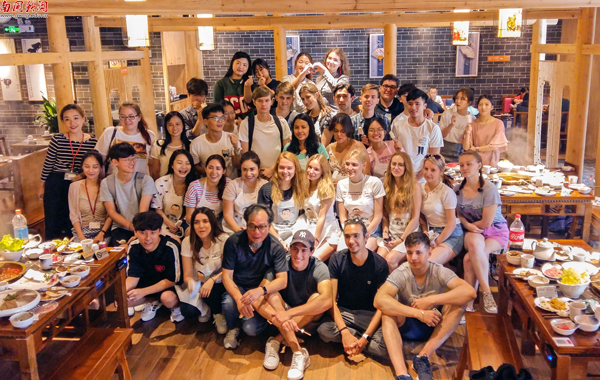 本网讯 独在异乡为异客,每逢佳节倍思亲。近日,学校邀请外教、留学生相聚广州从一品餐饮管理有限公司旗下的渝宗老甘传重庆老火锅钟港店,品尝中国传统美食——火锅,在火锅的咕咚声和热辣辣的气氛中提前庆祝中秋佳节。