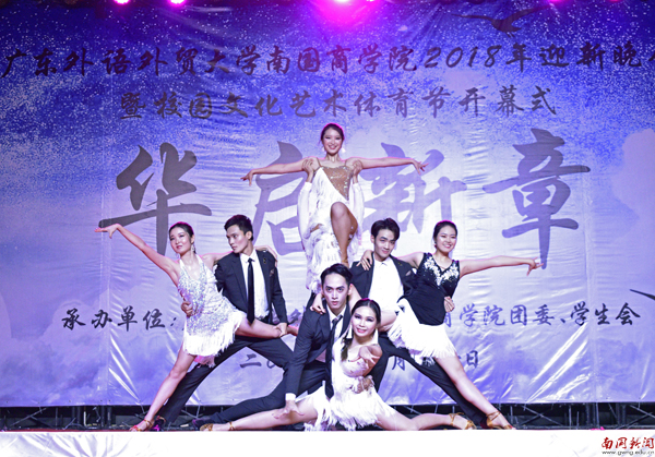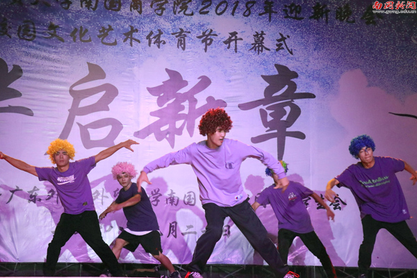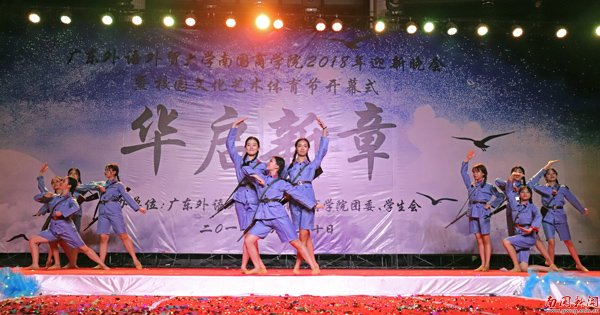 9月20日晚,2018年迎新晚会在文化广场举行,晚会以“华启篇章”为主题,由“烁影初辉”“芳华流韵”“腾焰飞芒”三个篇章组成。党委书记、副校长黎冬,副校长熊匡汉与师生共同观看了晚会。