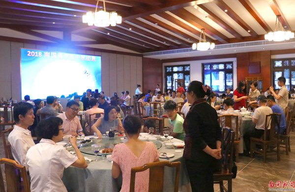 宴会上,与会人员赏明月、品美食,互相祝福,共迎佳节,共祝学校明天会更好。