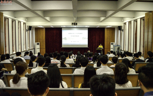 王心洁致辞。她指出,经济的高速发展使学科或行业间的界限逐渐被打破,现代社会对多层次、多规格、多样化的复合型人才需求激增,创新人才培养模式成为高等教育改革的首要问题,学科大类培养成为众多高校采取的方式。为深入推进教育教学改革,更好地满足学生个性化发展的需求,更好地服务广东区域经济发展的需要,学校开设经管复合型人才培养创新班(以下简称“经管创新班”)培养拥有突出的外语优势、扎实的专业技能、较高的综合素质的复合型、创新型、高层次人才。