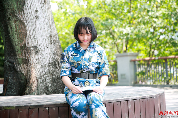 “刚入伍时期每一天都在后悔,离开部队了每一天都在怀念。”两年的时间转瞬即逝,军旅时光恍如昨日。部队纪律在潜移默化中影响着她的一言一行。回到南国,她将部队里的习惯带到了学校,比如每天坚持五公里长跑,规范整理内务等。