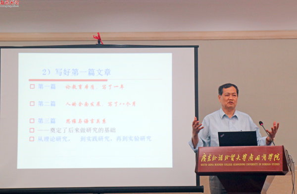 我校教育学院院长、教育学科带头人冯增俊教授认为,在抓好日常教育学教学的同时,辅以系列教育学高端前沿学术讲座,让学生课内课外相结合、基础知识与前沿信息相结合。冯增俊教授还是中国教育学会教育学分会副理事长兼教育人类学学术委员会主任、广东教育学会副会长兼教育现代化专业委员会理事长。9月开学,他为第一届教育学院新生开启了“当代教育改革热点研讨”为主题的系列讲座的第一讲——大学学习。他围绕大学怎么学、大学学什么、大学读书、大学上课以及大学生活五个主题,结合自身切身经历,旁征博引,为大家上了别开生面的开学第一课。