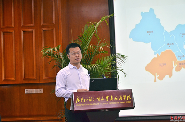 我校空港经济协同创新研究中心副主任、谢群博士作了粤港澳大湾区机场群综合竞争力研究报告。他从研究背景、粤港澳大湾区机场介绍、实证研究及结论等方面指出了机场群存在的不足,提出了发展对策。他认为,要提高机场群的综合竞争力,需要加强机场基础设施建设、准确定位机场的功能作用 、推动智慧机场的发展趋向及强化域内机场之间的合作。