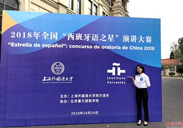 本网讯 近日,2018年全国“西班牙语之星”演讲大赛在上海外国语大学举行,我校西方语言文化学院2017级西班牙语专业学生谢双获低年级组一等奖,2016级西班牙语专业学生黄晓筠获高年级组初赛优胜奖。