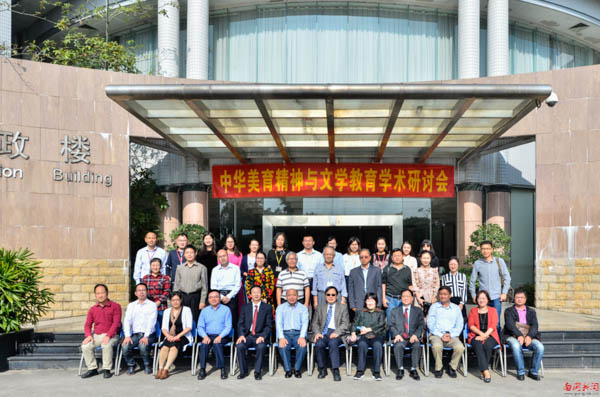 本网讯 12月6日,中华美育精神与文学教育学术研讨会在国际会议厅召开,来自全省各高校的专家学者齐聚南国商学院,分享学术观点、碰撞思想火花。中华美学学会会长、中国社会科学院文研所研究员高建平教授,原暨南大学党委书记、现广东省作家协会主席蒋述卓教授,华南师范大学博士生导师刘纳教授,中山大学博士生导师、原广东美学学会副会长王坤教授、我校副校长熊匡汉出席活动。我校中国语言文化学院院长柯汉琳教授主持开幕式。
