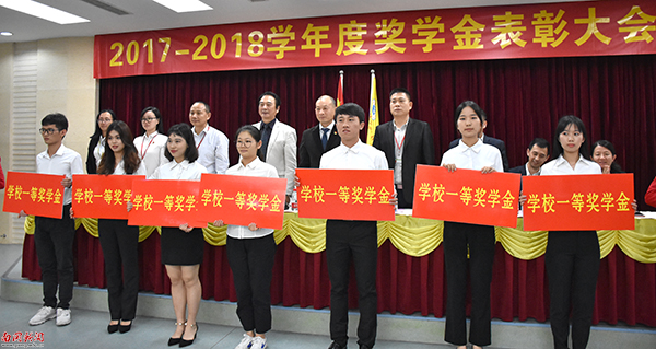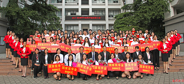 大会依次对国家奖学金、国家励志奖学金、新生奖学金、优秀学生奖学金获得者,“三好学生”“十佳学习之星”等荣誉称号获得者,以及先进班集体、优良学风班集体等进行表彰。其中,7人获得国家奖学金,205人获得国家励志奖学金,10人获得第九届“十佳学习之星”称号,20名同学获新生奖学金,20个班级获得“优良学风班集体”称号,41个班级获“先进班集体”称号,1264名同学获得2017-2018学年度优秀学生奖学金,2464名同学被分别授予2017-2018学年度“三好学生标兵”、“三好学生”、“社会工作优秀分子”“学业表现优秀分子”和“文体活动优秀分子”等荣誉称号。