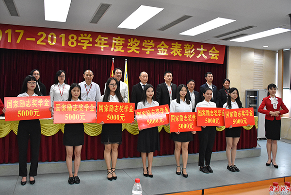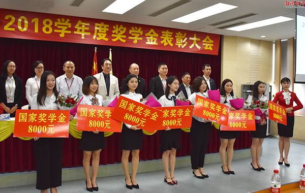 校领导、老师为国家奖学金获得者颁发荣誉证书 (邓浩谋 摄)