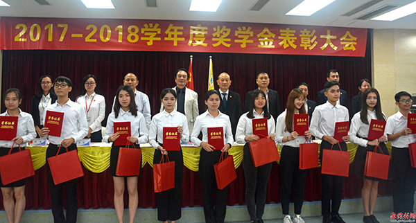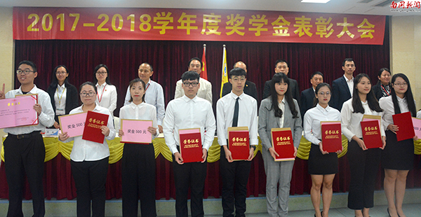 本网讯 12月6日下午, 2017-2018学年度奖学金表彰大会在C201学术报告厅举行。党委书记、副校长黎冬,副校长何艾兵出席活动。