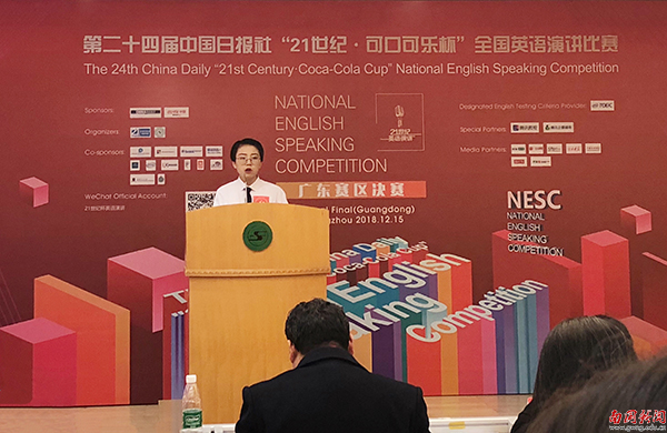 本网讯 12月15日,第24届中国日报社“21世纪·可口可乐杯”全国英语演讲比赛广东赛区总决赛在中山大学落下帷幕。英语语言文化学院2016级施润同学获广东省总决赛一等奖。