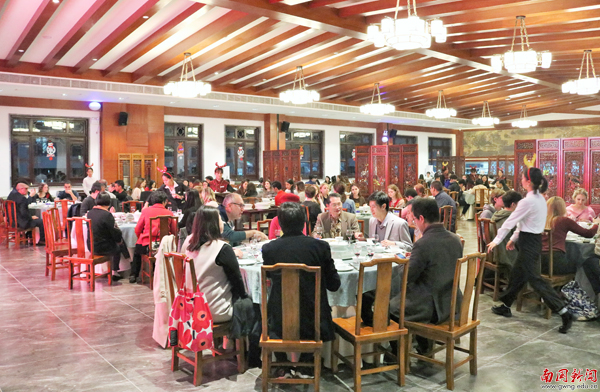 本网讯(记者 林钿)晶莹剔透的虾饺、汁水丰盈的小笼包、松软金黄的葡挞……各类佳肴满置桌面,觥筹交错,笑语欢颜,好不热闹。12月19日晚,学校邀请外教、留学生共聚中餐厅,提前庆祝新年的到来。