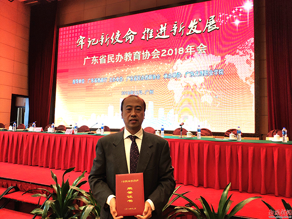 本网讯 12月20日上午,广东省民办教育优秀教师、优秀教育工作者和优秀校长表彰大会在广州召开。我校李铁成、卢少勇两位老师分别获2018年广东省民办教育优秀教师、优秀教育工作者荣誉称号。李铁成老师作为优秀教师代表上台领奖。