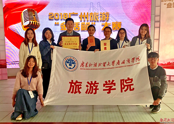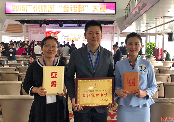 本网讯 12月20日上午,由广州市旅游局主办的2018广州旅游“金话筒”大赛总决赛落下帷幕。我校旅游学院2017级旅游管理专业学生钟智兰荣获“广州市十佳旅游形象宣传大使”称号,旅游管理系主任张海燕获“最佳指导老师”奖,我校获“最佳组织单位”称号。