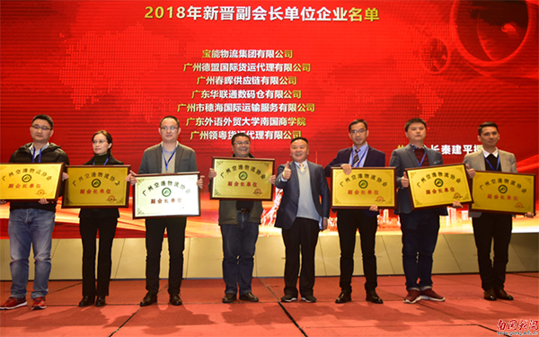 本网讯 近日,我校副校长何艾兵一行参加了广州第一届临空经济(航空物流)发展高峰论坛暨广州空港物流协会2019迎春年会,我校正式成为广州空港物流协会副会长单位,广州空港物流协会执行会长秦剑平为我校授牌。