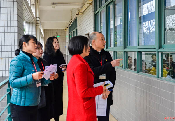本网讯 2月25日,是新学期开课第一天。学校党委书记、副校长黎冬,副校长何艾兵、熊匡汉、王心洁、赵晨,各教学单位负责人、教务处及学生处相关人员分成5个检查小组,深入教学一线,就教师备课及上课情况、学生出勤和课堂秩序情况以及各教学单位的工作安排情况等方面进行了全面检查。