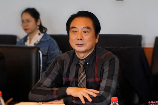 副校长何艾兵介绍学校情况(郭益亦 摄)