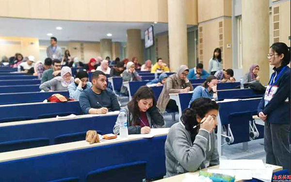 7名志愿者赴埃工作后,除了完成汉语教学工作,还协助处理孔子课堂的工作事务。3月26日,艾因夏姆斯大学孔子课堂迎来首场HSK(汉语水平考试)和HSKK(汉语口语水平考试),295名考生参加了考试,我校志愿者完成了监考、考务等系列工作。