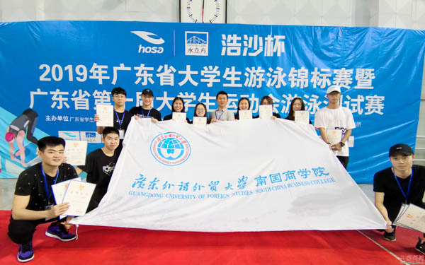 本网讯 4月12至14日,“浩沙杯”广东省大学生游泳锦标赛暨广东省第十届大学生运动会游泳测试赛在华南师范大学(大学城校区)游泳馆举行。我校11名参赛选手代表学校参加比赛,他们顽强拼搏,奋勇争先,获得了12个奖项的好成绩。