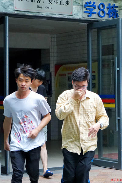 同学跑出宿舍楼(洪晓玉 摄)