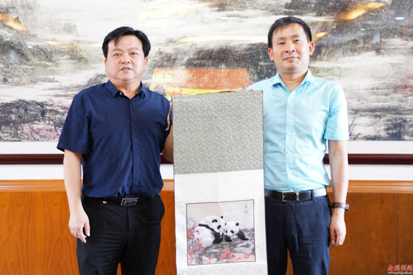 城市学院常务副校长左申兵(右)与我校常务副校长赖志立代表学校互赠礼物(谢丰 摄)