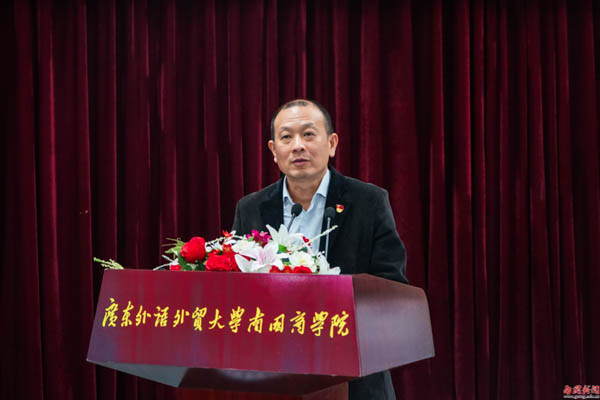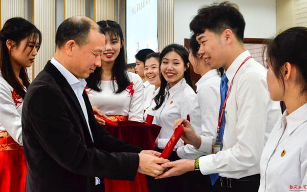 黎冬代表学校党委向受表彰的优秀集体及个人表示热烈的祝贺,向长期以来始终关心和支持我校共青团工作的老师们致以崇高的敬意,向一年来为团学工作辛勤付出的同学们致以诚挚的感谢。他说,2018年,我校各级团组织和广大团员青年,在各项工作取得了良好成绩,涌现出一批先进集体和个人。2019年,希望广大青年学生能以饱满的热情和端正的态度投身于学习与工作中,以良好的成绩迎接新中国成立70周年、纪念五四运动100周年。对此,他向广大青年团员提出了三点希望:一是坚定理想信念,弘扬五四精神;二是重视团建工作,严格规范自身;三是珍惜青春年华,争做青年榜样。黎冬表示,奋斗是青春最厚重的底色,青春在奋斗中熠熠闪光。站在新时代的历史起点,站在学校改革发展的新征程中,希望广大青年不忘初心,砥砺奋进,勇于创造出无愧于时代、无愧于使命、无愧于青春的辉煌业绩。