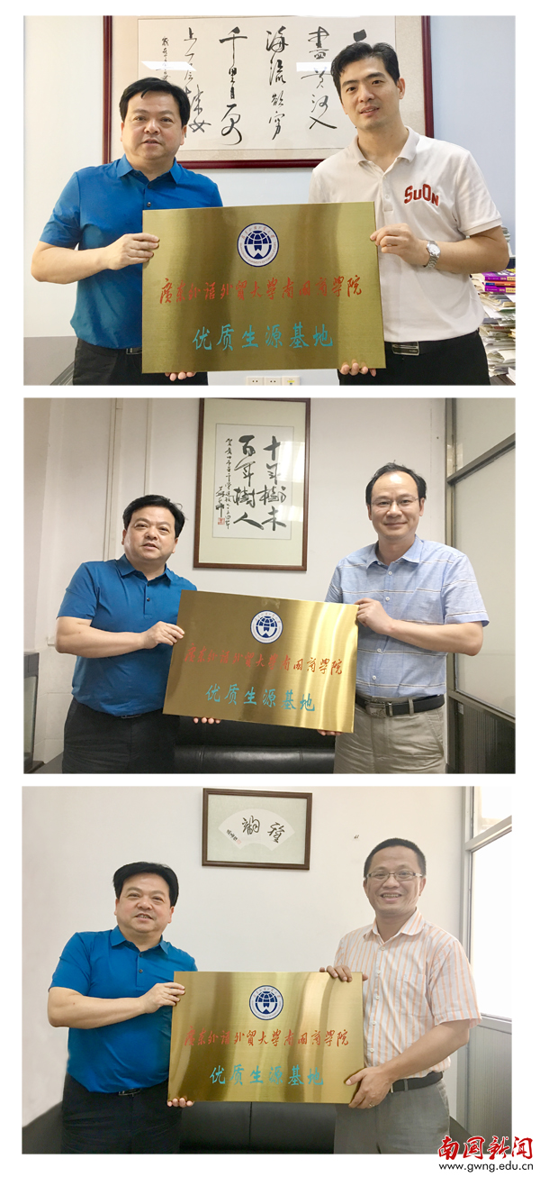 本网讯 5月14日,我校常务副校长赖志立一行前往广州南武中学、广州市第一中学、广州市第六十五中学三所中学开展交流活动,并进行“优质生源基地”授牌仪式。
