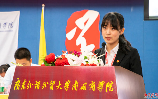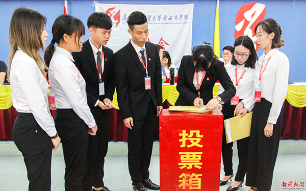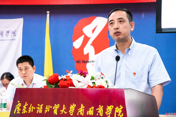 大会在激昂的国歌中拉开了序幕。党委副书记付鸿信致辞,他代表学校党委对大会的召开表示热烈的祝贺。他说,学校第五次学生代表大会召开以来,各级学生会干部以保持和增强政治性、先进性、群众性为目标,聚焦广大青年学子的学习成长、身心健康、权益维护,不断强化学生会组织自我教育、自我管理、自我服务、自我监督的职能,在思想引领、服务成长方面做出了突出成绩。“大学生是青年中的优秀群体,是社会中的优秀分子,是推动社会进步的中坚力量,是南国商学院不断发展的动力源泉。”付鸿信对青年学生提出了三点希望,希望他们坚定理想信念,不负这个伟大的时代;希望他们学好专业本领,勇于砥砺奋斗;希望各级学生会和广大学生骨干立足“搞好服务、当好表率”,全面深化推进学生会工作改革。