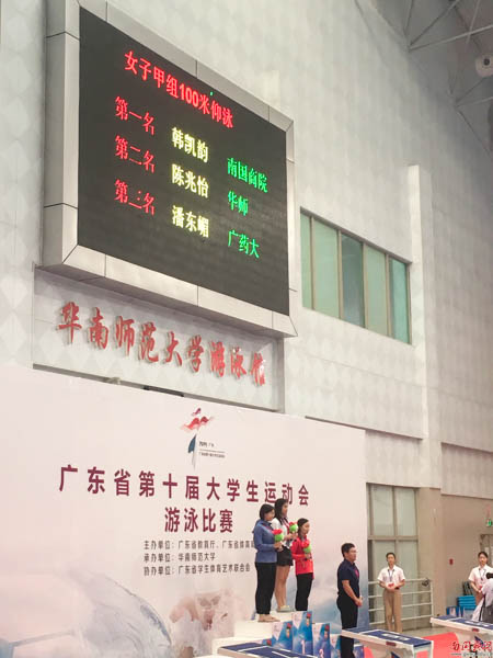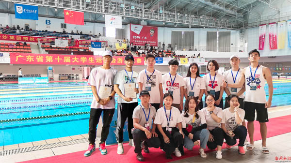 本网讯 5月14日至20日,由广东省教育厅、广东省体育局主办的2019年广东省第十届大学生运动会游泳比赛在华南师范大学游泳馆举行。此次比赛有来自广东省56所高校的代表队,共1125名运动员参赛。我校游泳队派出7名运动员代表学校参加高校甲组比赛。他们顽强拼搏,奋勇争先,为学校争夺了荣誉。