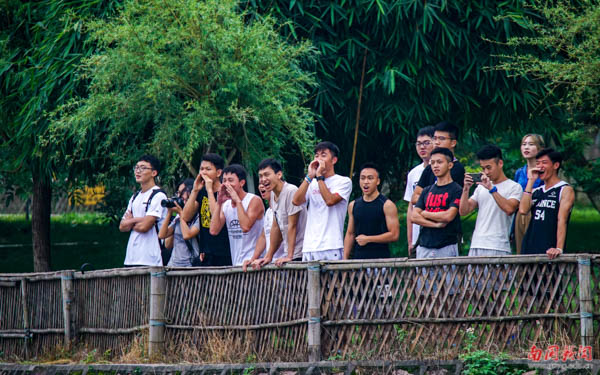 亲友团场外助阵,声浪一层更比一层高(谢丰 摄)
