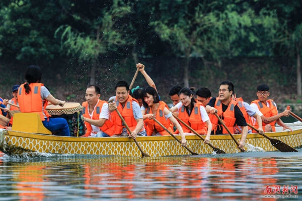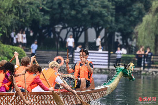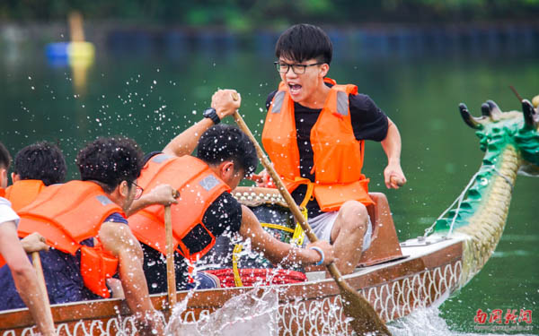 本网讯 5月29-30日,第九届龙舟赛在跃龙湖举行。师生们通过参与龙舟赛,亲身体验传统文化,共庆端午佳节。龙舟竞渡又称“赛龙舟”“划龙船”“龙船赛会”,是具有浓郁地方民俗文化色彩的群众性娱乐活动。从初见龙舟时的新奇,龙舟试水时的兴奋,训练时的努力,到比赛时的默契无间,赛龙舟所象征的积极向上、团结奋进的精神,正是这项传统运动流传至今、影响广泛的魅力所在。让我们跟随着新闻社的镜头,一起体验这场刺激的龙舟赛,感受传统文化的魅力。
