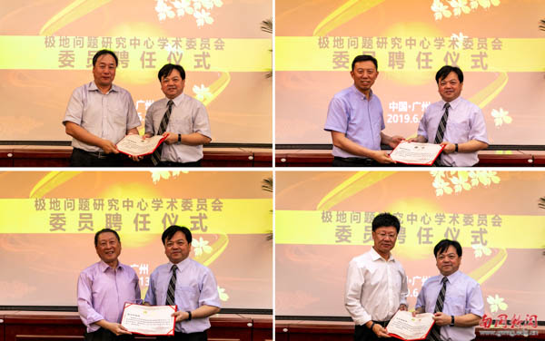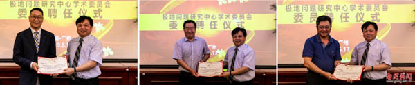 常务副校长赖志立致欢迎辞,他介绍了学校和极地问题研究中心的历史沿革和发展现状,希望南国极地问题研究中心在专家们的指导和支持下,取得丰硕成果。赖志立为极地问题研究中心的学术委员颁发了聘书。