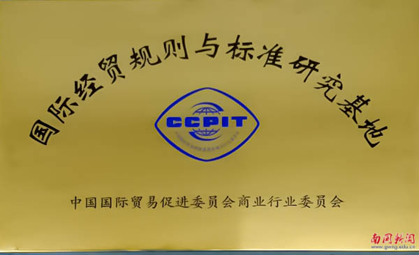本网讯 近日,由中国国际贸易促进委员会主办的国际经贸规则与标准研究基地建设座谈会暨首批研究基地授牌仪式在江苏南京举行。经申报及严格评审,我校被中国国际贸易促进委员会(以下称中国贸促会)授予全国首批“国际经贸规则与标准研究基地”称号,成为广东省唯一获此殊荣的民办高校。