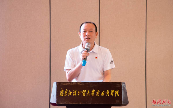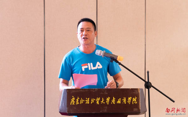 本网讯 6月18日晚,广东省第十届大学生运动会南国商学院参赛总结暨表彰大会在食堂四楼中餐厅召开。学校党政领导班子成员出席会议。体育部全体教师、参赛运动员参加大会。大会由副校长熊匡汉主持。
