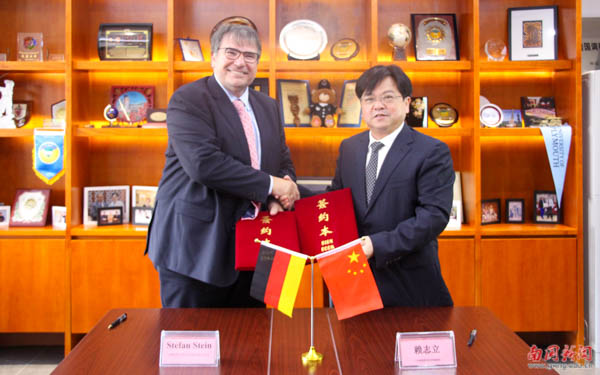 随后,我校与德国欧洲应用技术大学签署合作备忘录。双方将在师生的互换交流、学术活动、师资培训等领域开展合作。