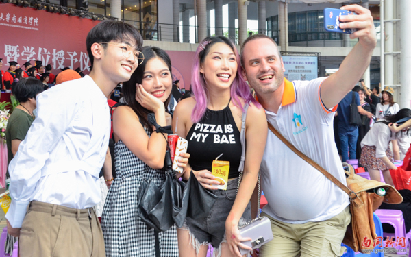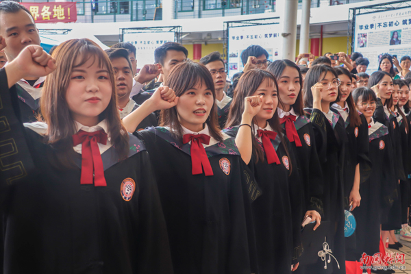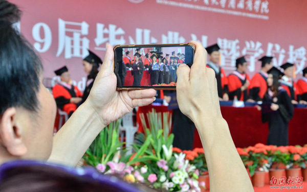 6月22日,是2019届学生大学毕业的日子。一束花,一个拥抱,一句珍重,镜头前一抹动人的微笑,全都定格在今天。毕业,是一场盛大的离别,又是一个崭新的起点。离开大学校园,从此就是“社会人”。愿你们既有前程可奔赴,亦有岁月可回首。母校,永远为你祝福!(欧羡婷 徐心怡)