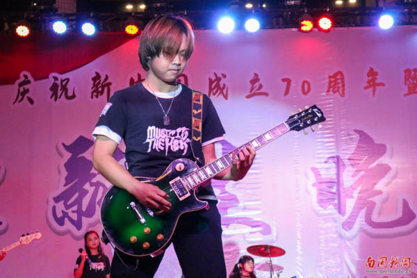 弦韵吉他社以一首《翅膀》拉开晚会序幕。高分贝的电音将现场引爆,舞台上的女主小小的身材里蕴藏着大大的爆发力,台下一波音浪接着一波,惊艳了全场。