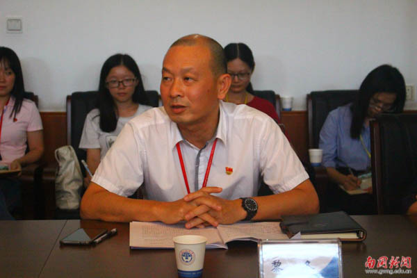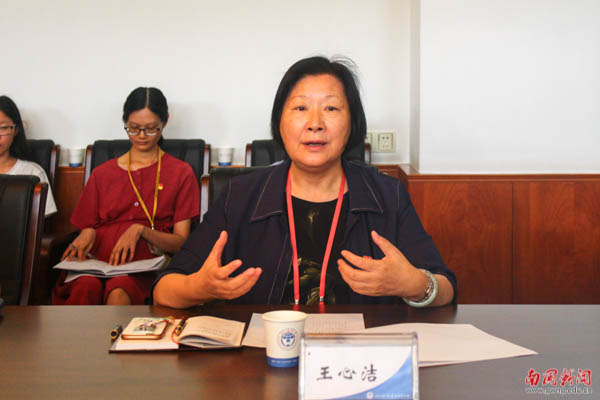 副校长王心洁讨论教育工作者的任务和使命(王青 摄)