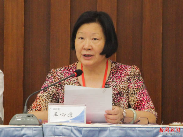 副校长王心洁介绍我校的基本情况和办学特色(陆怡 摄)