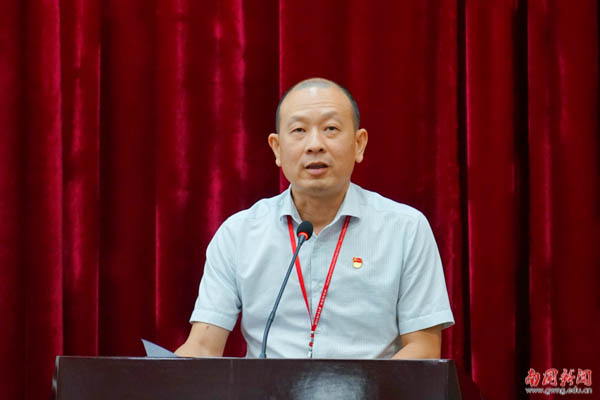 黎冬为比赛致开幕辞。他说,本次大赛以激发在校大学生的爱国爱党、爱岗敬业和积极向上的热情为主旨,通过金牌导游大赛,进一步激发大学生的爱国热情,弘扬红色经典,传承革命精神,促进学生深入了解和贯彻习近平总书记讲话精神,让同学们深刻认识到作为中华儿女所需承担的责任;同时,进一步提高本校学生旅游专业水平、文化底蕴和综合素质,搭建经验交流学习平台,激发大学生爱岗敬业和努力工作的热情,增强导游作为文化交流使者的作用,宣传推广红色旅游资源。他希望同学们都能拿出自己的精气神韵,尽情地在舞台上展现自己的风采。