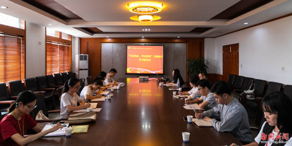 本网讯 10月9日下午,我校“不忘初心,牢记使命”主题教育第三次集中学习研讨会在行政楼309会议室召开。党委书记、副校长黎冬主持会议并围绕“师德师风建设”讲话。管理学院党总支部委员、各基层党支部书记、辅导员和学生代表参加会议并进行学习研讨。