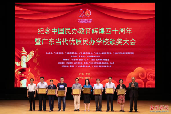 10月15日上午,纪念中国民办教育辉煌四十周年暨广东当代优质民办学校颁奖大会在番禺执信中学召开。我校获广东当代优质民办学校荣誉称号。副校长王心洁代表学校上台领奖。