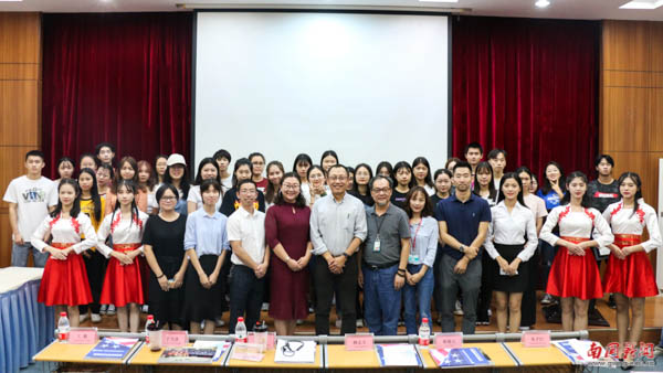 王立新代表中国对外友好合作服务中心致辞。他表示,今年是中国对外友好合作服务中心与广外南国携手走过的第十年,感谢学校、国际合作与交流中心、各职能部门、二级学院领导、以及相关辅导员和老师们的辛勤付出和对中心的信任与支持。合作的十年间,参加项目的南国学生克服了中外语言障碍、文化风俗和饮食习惯等困难,积极融入国外生活,在服务的企业中辛勤工作,展现了南国学子吃苦耐劳、爱岗敬业的优秀品质,给美国企业、美国同事和国际学生留下了深刻的印象。他同时也希望通过双方的努力,共同为社会培养大批具有国际化视野、实践能力强的高素质应用型人才。