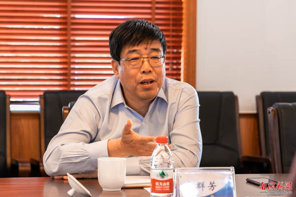 会上,王华代表学校对袁群芳一行的到访表示热烈欢迎,并从办学历程、办学规模、教师队伍、专业设置等方面,向来访嘉宾介绍了我校的情况。王华指出,广东外语外贸大学南国商学院的前身是广州市南国女子学校,创办于1996年,随后经过广州市南国工商培训学校、广州市南国工商学校、广州市南国工商专修学院等办学阶段,到2006年,获批为本科层次独立学院。截至目前,学校设有10个学院,3个教学部,39个本科专业。现有在校生9300余人,教职工700余人。学校以外语为办学特色,现有10个外语语种,12个外语专业。学校加大大学英语教学力度,大幅增加大学英语学时学分,将大学英语成绩纳入学士学位授予条件。除了专业的外语教学之外,近几年,学校组织实施“随时随地学外语、讲外语、用外语”活动,营造了浓厚的外语学习氛围,有效地提升了学生的外语水平。