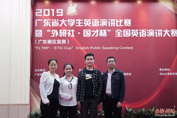 本网讯 11月9日至10日,2019年广东省大学生英语演讲比赛暨“外研社·国才杯”全国英语写作、阅读和演讲大赛(广东赛区)在广州举行。经过激烈角逐,我校8名学生在三个比赛中获佳绩。经济学院陆世昌和英语语言文化学院谭咏诗获演讲比赛三等奖;英文学院唐昕、冯靖延和管理学院杨智宇获写作大赛三等奖;经济学院黄莹莹、陈炜林和英文学院罗晓娜获阅读大赛三等奖。