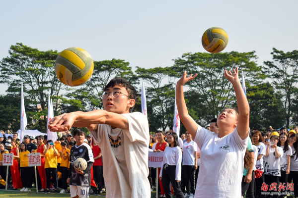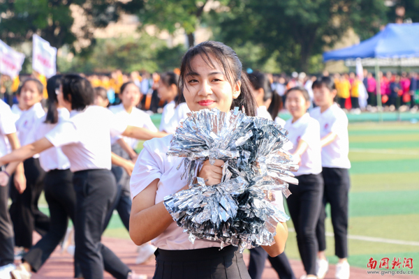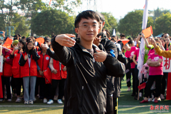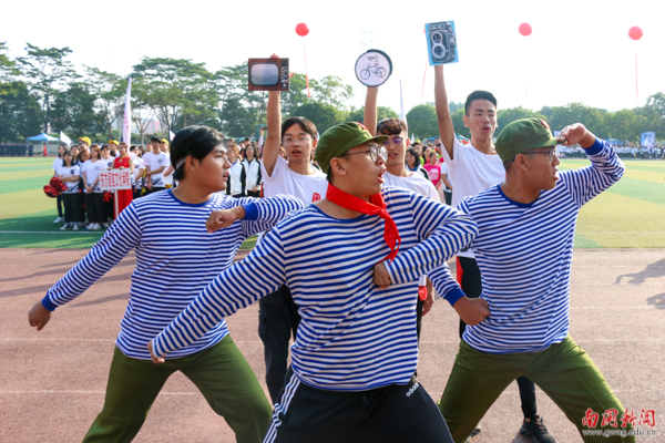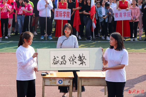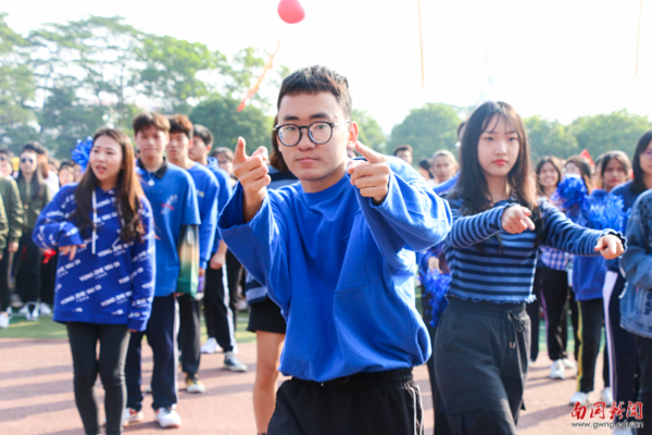手牵着手拉起的圆圈,是为爱而圈的同心圆。在教育学院的方阵表演中,由独舞到小组舞蹈演变发展到全院律动,这是学生成长变化的足迹,是教育学院在南国发展壮大的过程。最后,师生共同表演《兔子舞》,可爱活脱的狂欢赢得在场观众的阵阵欢呼。